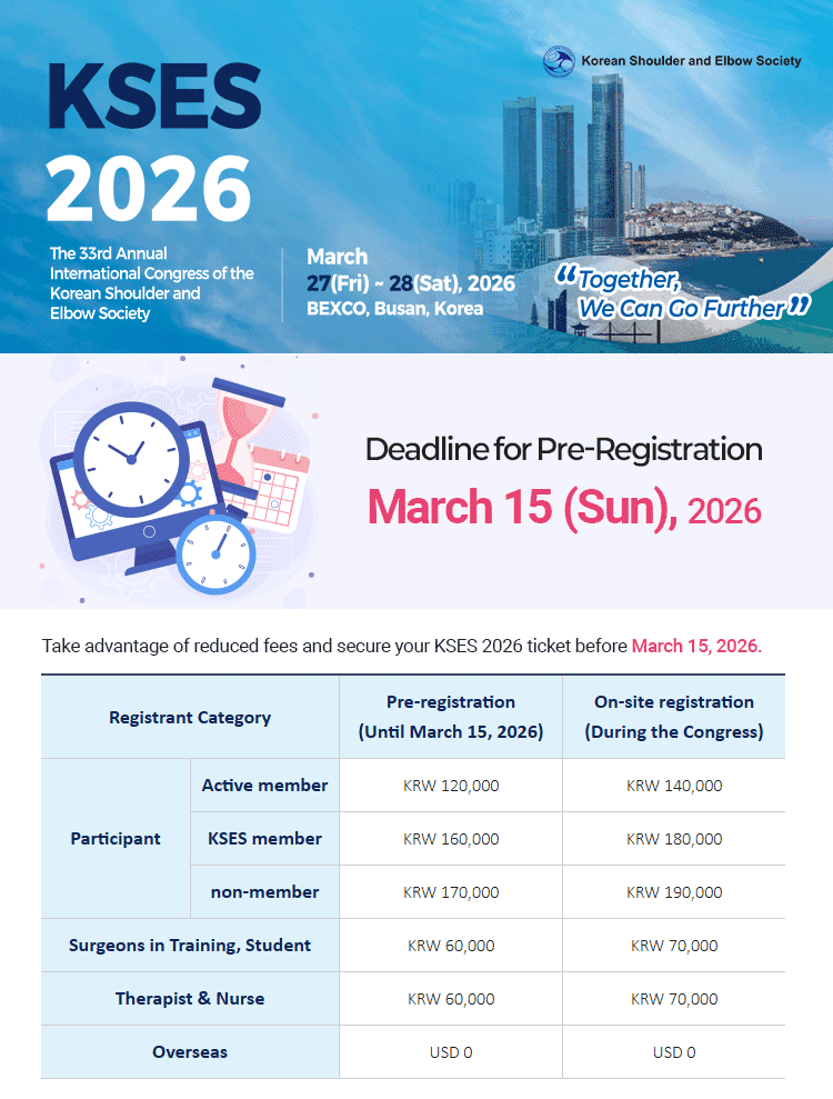 [대한견주관절의학회] KSES 2026: 제33차 춘계 국제학술대회 사전 등록 안내