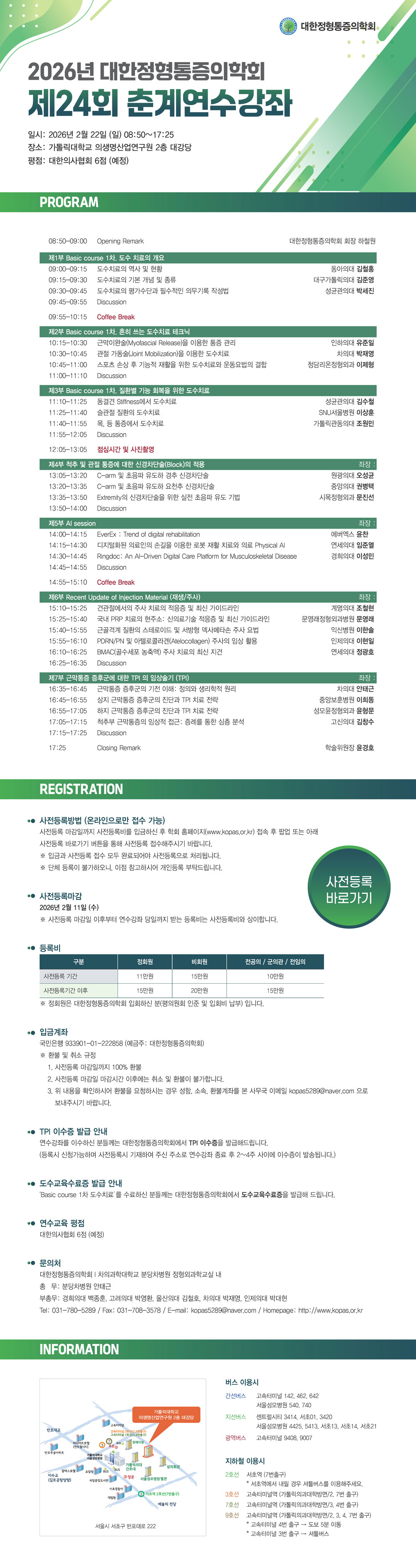 2026년 대한정형통증의학회 제24회 춘계연수강좌 안내