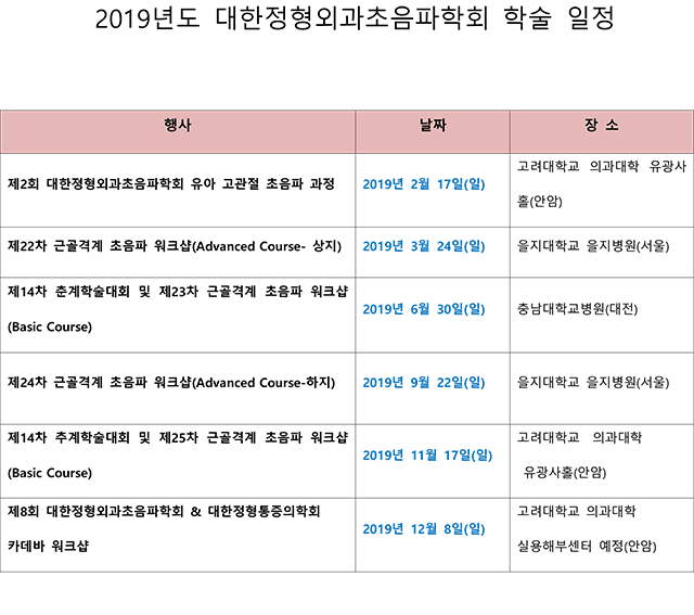 2019년도 대한정형외과초음파학회 학술일정 및 임원...
