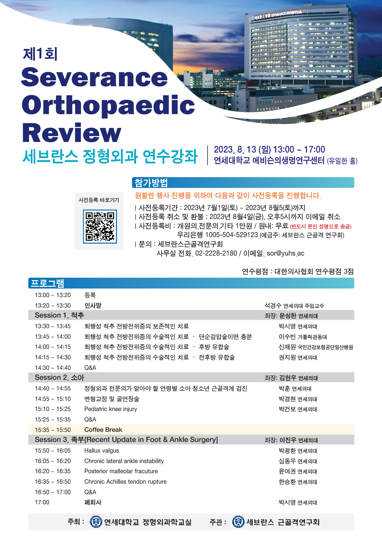 2023 제1회 Severance Orthopaedic Review 세브란스 정형외과 연수강좌