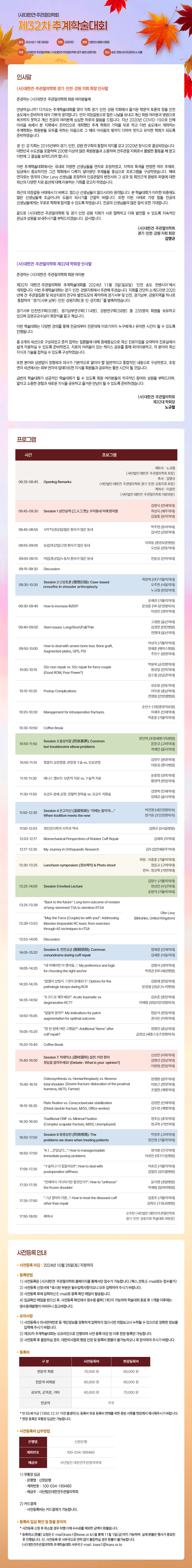 [대한견주관절의학회] 제32차 추계 학술대회 사전 등록 안내