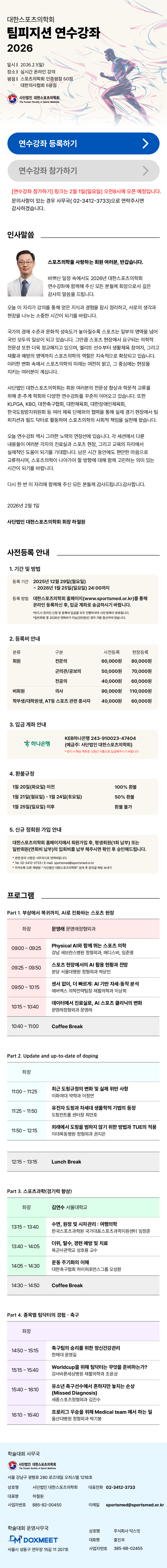 제목: [대한스포츠의학회] 2026 팀피지션 연수강좌 개최 안내